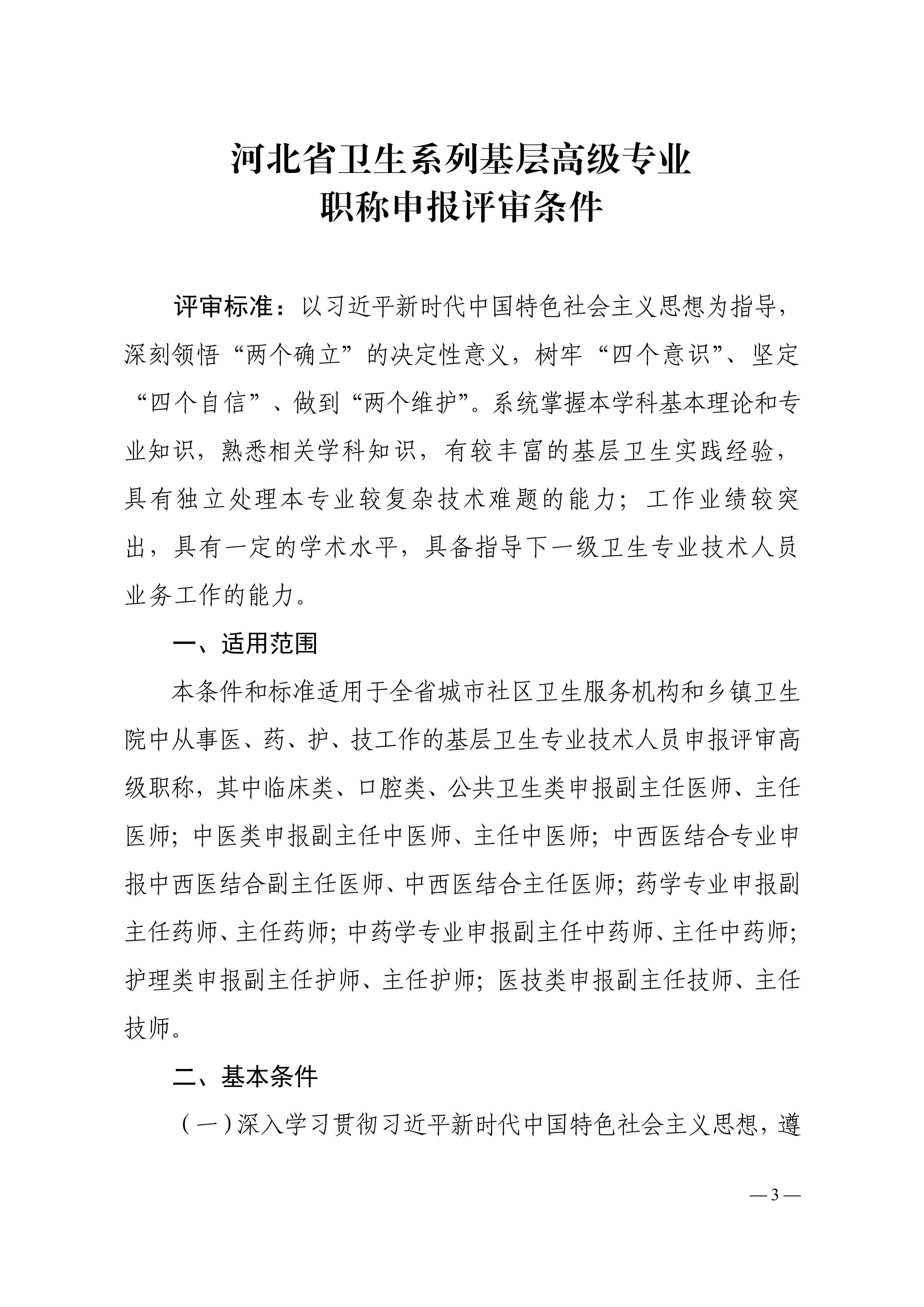 河北省人力资源和社会保障厅河北省卫生健康委员会关于印发《河北省卫生系列基层高级专业职称申报评审条件》的通知河北省人力资源和社会保障厅 河北省卫生健康委员会关于印发《河北省卫生系列基层高级专业职称申报评审条件》的通知.pdf